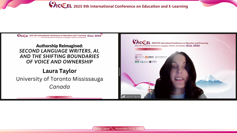 Invited Speech 9-Online: Assoc. Prof. Laura Taylor, University of Toronto, Canada, offered his insights on "Authorship Reimagined: Second Language Writers, AI, and the Shifting Boundaries of Voice and Ownership," discussing AI’s influence on writing identity.