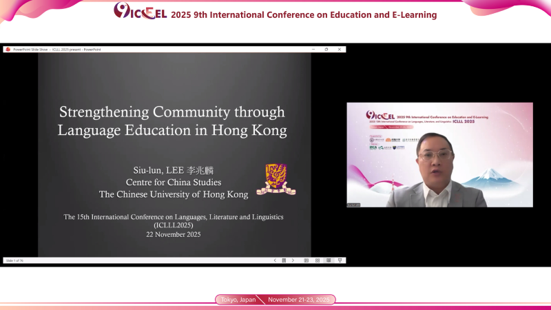 Invited Speech 7-Online: Dr. Siu-lun Lee, The Chinese University of Hong Kong, China, delivered his talk on "Strengthening Community through Language Education in Hong Kong," focusing on the social value of language education.