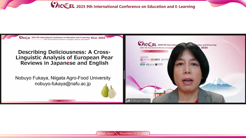 Invited Speech 10-Online: Prof. Nobuyo Fukaya, Niigata Agro-Food University, Japan, discussed "Describing Deliciousness: A Cross-Linguistic Analysis of European Pear Reviews in Japanese and English," conducting a comparative study of language expression.